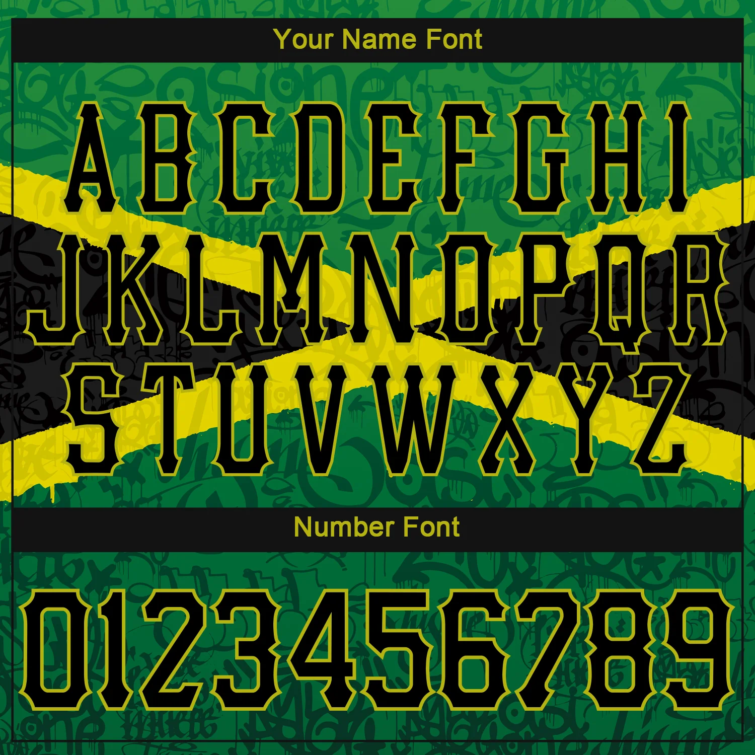 Custom Graffiti Pattern Black-Green 3D Jamaica Authentic Baseball Jersey