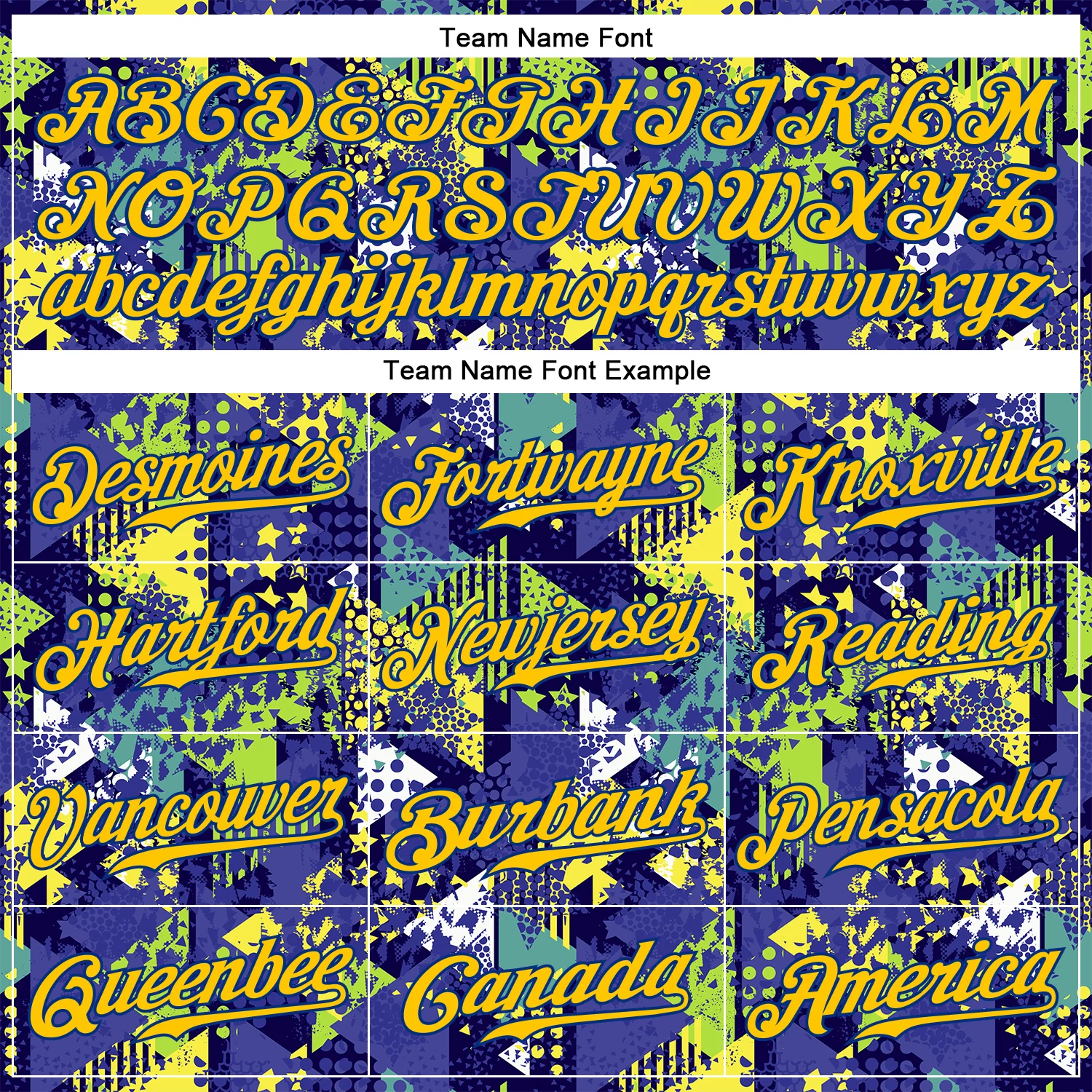 • Custom Graffiti Pattern Royal-Gold 3D Creative Geometric Figures Triangle And Dots Authentic Baseball Jersey