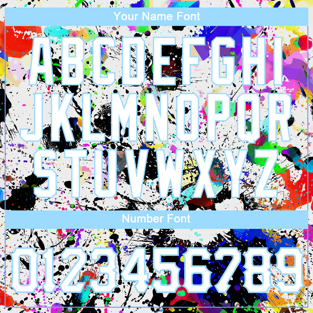 Custom Splashes Graffiti Pattern White-Light Blue 3D Authentic Baseball Jersey